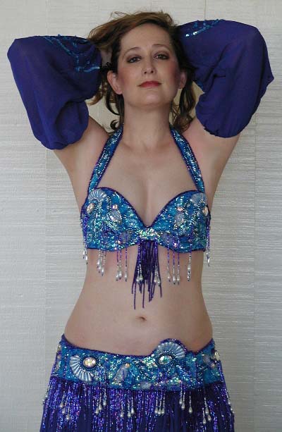 and earrings, one to match the turquoise highlights of the bedlah and one to