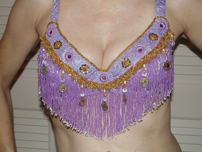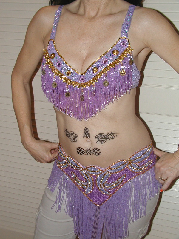 match the deep blues. Mandella also needed accessories for a red and gold costume she had. Mandella purchase a lavender beaded belt that fit her perfectly. The