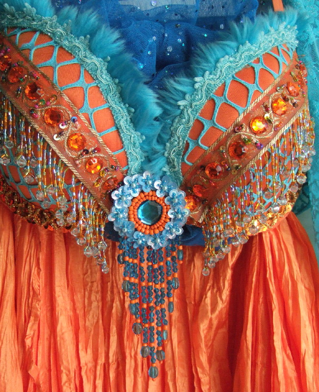 Here are samples of Bahira's Brooches sewn onto bedlah bras.