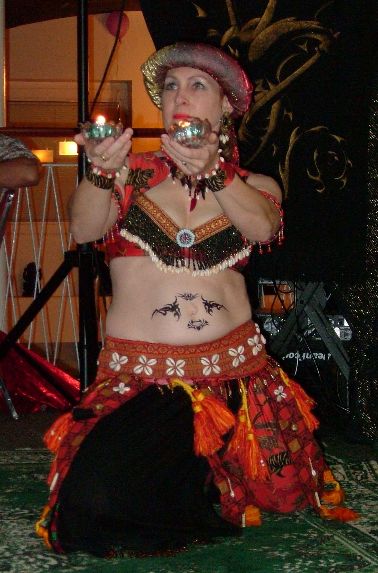 The show featured five leading Bay Area dancers: Ma Shuqa, Ka'ela, Maia, Vashti and Bahira, each demonstrating a different style of Belly Dance. In between the headliner performers, volunteer student dancers danced and modeled fashions which had been assembled by the hosting trio reflecting each style of dance from practice-wear to performance ensembles.