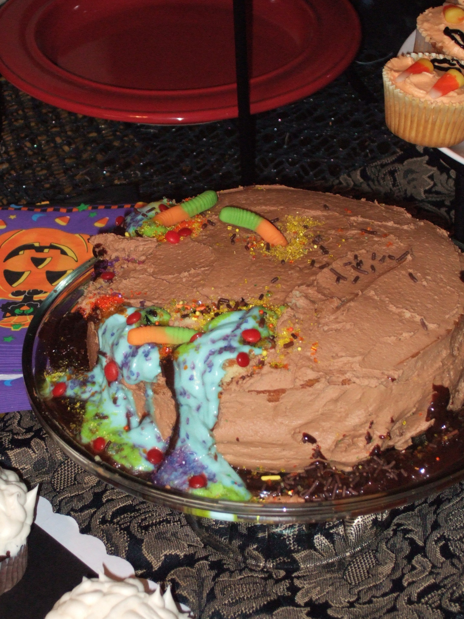 Grisly Preserves......... and A Spooky Spread...... The kids loved the Dessert: Oozing Chocolate Cake