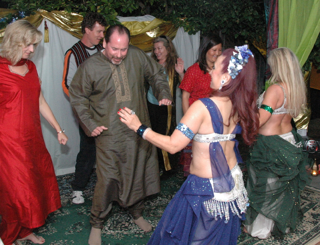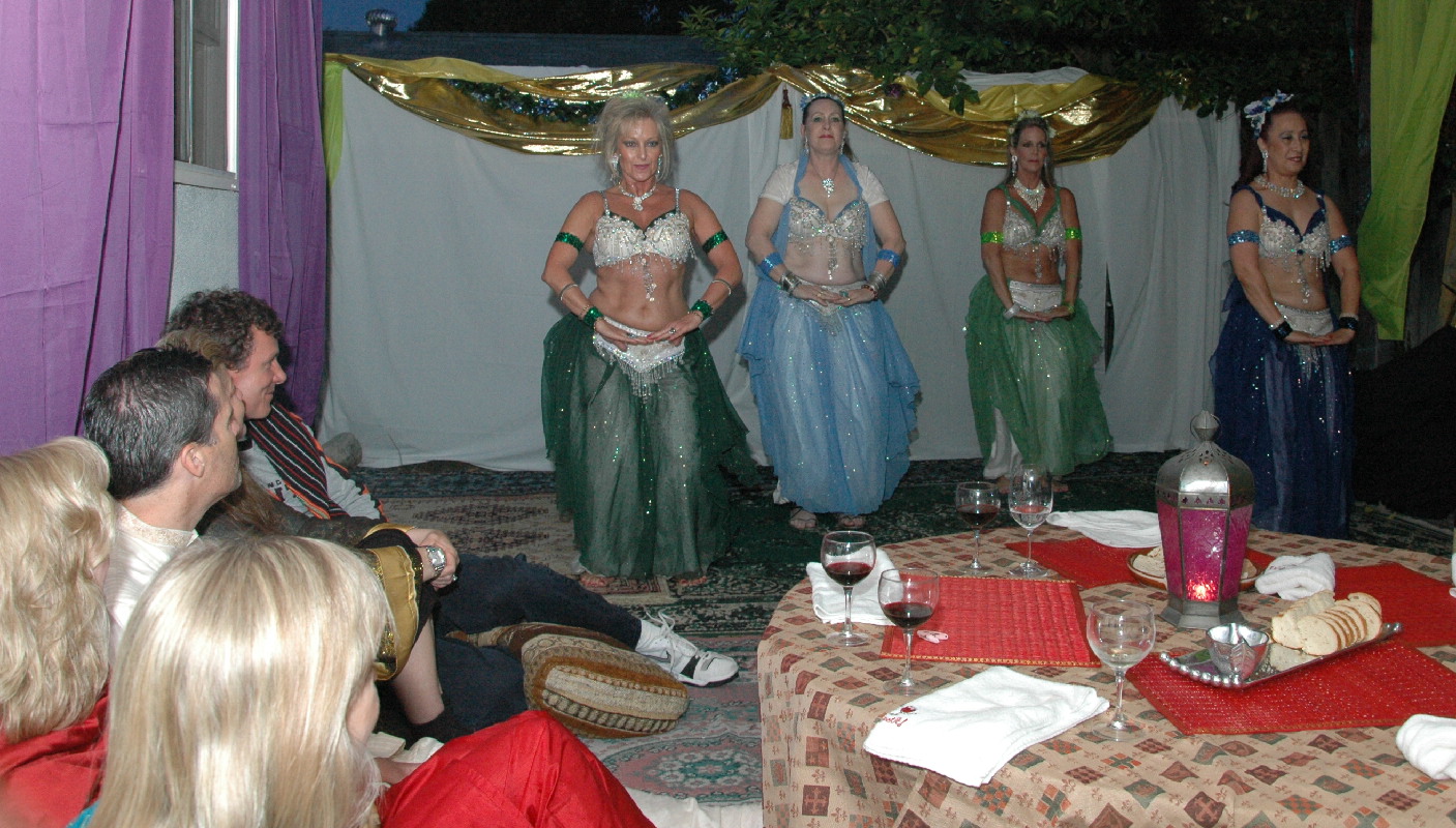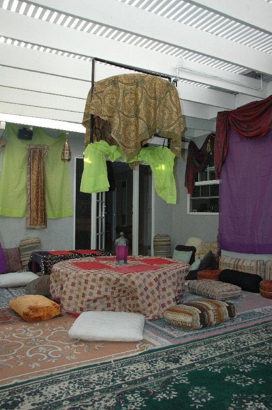 Each year Washington Open Elementary School in Santa Clara auctions off items and packaged events to raise money for the student body programs and sports. The most popular and biggest money maker auctioned each year is a Mediterranean Nights Dinner catered by parents for the lucky winners in their home. Some parents and Bahira work to transform the winner's yard or patio into a Middle Eastern Boudoir. Other parents bring selected gourmet dishes to be served by other volunteers. The topper for this catered Dinner is an entertaining 30 minute show by Indigenous after the meal. This year, the Dinner auctioned off for $1500. Here are some photos from the event courtesy of Ezekiel Sanborn de Asis.