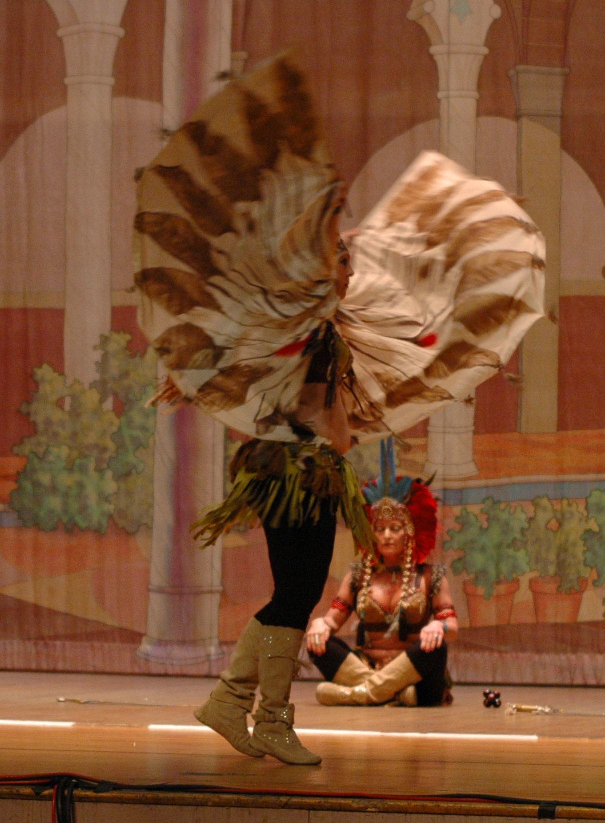 Bahira performed with Indigenous at 7 PM Sunday on the Main Stage of the Richmond Memorial Auditorium at the close of Rakassah West in Richmond, California. Indigenous was proud to perform it's Mytho-Poetic Suite of four Amer-Indian Belly Dances entitled "Spirit Birds."